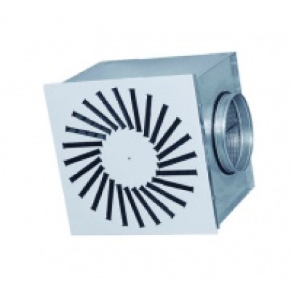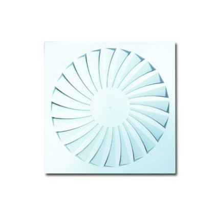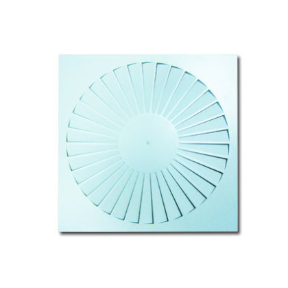 NOIZZLESS представляет воздухораспределители вихревые (закручивающие), прямоугольная панель. Диффузоры с фиксированной геометрией струи, имеют ряд неподвижных радиальных лопастей. Серия DPZ -прямоуг..